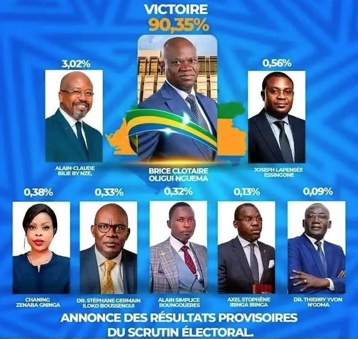 Son principal adversaire, Alain Claude Bilie-by-Nze, ancien Premier ministre sous le régime Bongo, n’a récolté que 3,02 % des voix. Le taux de participation s’élève à 70,4 %, une nette baisse comparée aux premières estimations qui faisaient état de plus de 87 %. Sur 636 606 électeurs, 61 0747 votes ont été valablement exprimés, tandis que 25 859 bulletins ont été déclarés blancs ou nuls.